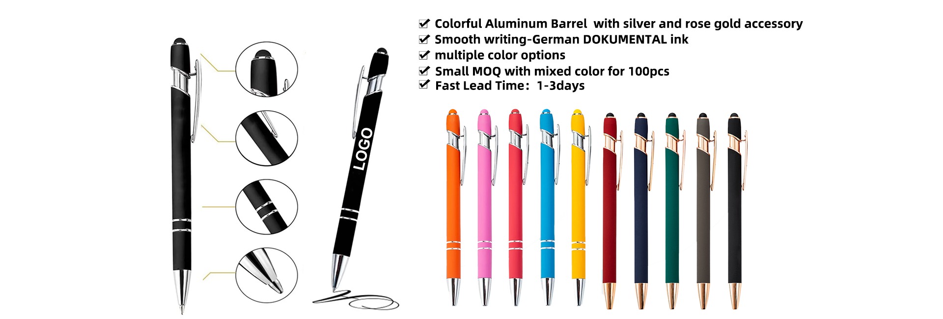 Caneta esferográfica de metal com impressão de logotipo personalizado, peças de metal com canetas multicoloridas, canetas esferográficas de metal